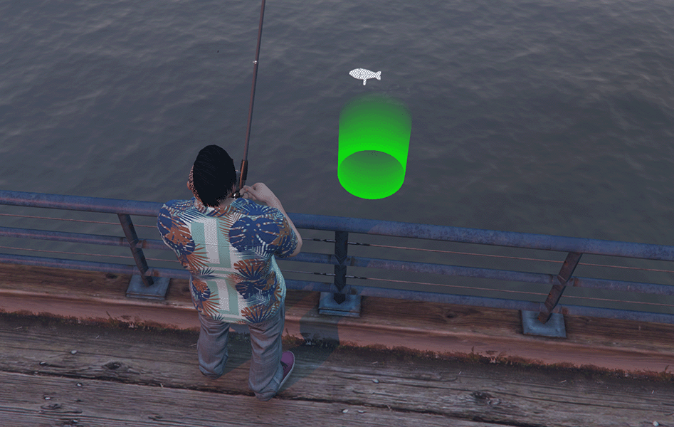 Bu işaretçi kancanıza yaklaşan balığı temsil eder. Balığın hareketi, kancanızı merkez alan dairesel bir alanda rastgele bir noktaya gidecek şekilde ayarlanmıştır. Balık işaretçisi kancanızın alanına girdiğinde sol klik ile balığı kancanıza bağlarsınız. Balık kancanıza bağlandıktan sonra sol klik ile balığı çekmeye başlarsınız. Balığı çekme işlemini yaparken oltanızın gergisini dengede tutmalısınız. Sol klik tuşuna basılı tutarak gerginliği arttırabilirsiniz, sol tuşu bıraktığınızda gerginlik azalacaktır. Eğer oltanızın gerginliğini fazla arttırırsanız oltanızın ipi kopacak ve balık yeminizi alıp kaçacak. Tam tersi, gerginliği fazla düşük tutarsanız balık yeminizi alıp kaçacak. Gerginliğinizi dengeli konumda tuttuğunuz süre boyunca balığı çekme hızınız artacak, diğer konumlarda hızınız yavaşlayacaktır.